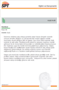 Herbir profilin yetkinlik seviyesine karşılık gelen detay açıklamalar verilmektedir. Bu açıklamalarda profillerin satış sürecinde karşılıkları açıklanmaktadır. Profillerin birbirleri ile ilişkileri ve birbirlerini nasıl etkiledikleri açıklanmaktadır. Düşük profiller için iyileştirme uyarıları verilmektedir. Satıcıların; müşteri, rakip, yaratıcılık seviyeleri, kelimelerle resim çizme başarısı ve daha bir çok faydalı bilgi verilmektedir.